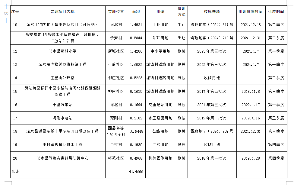 2.沁水县2025年度国有建设用地供应计划明细表