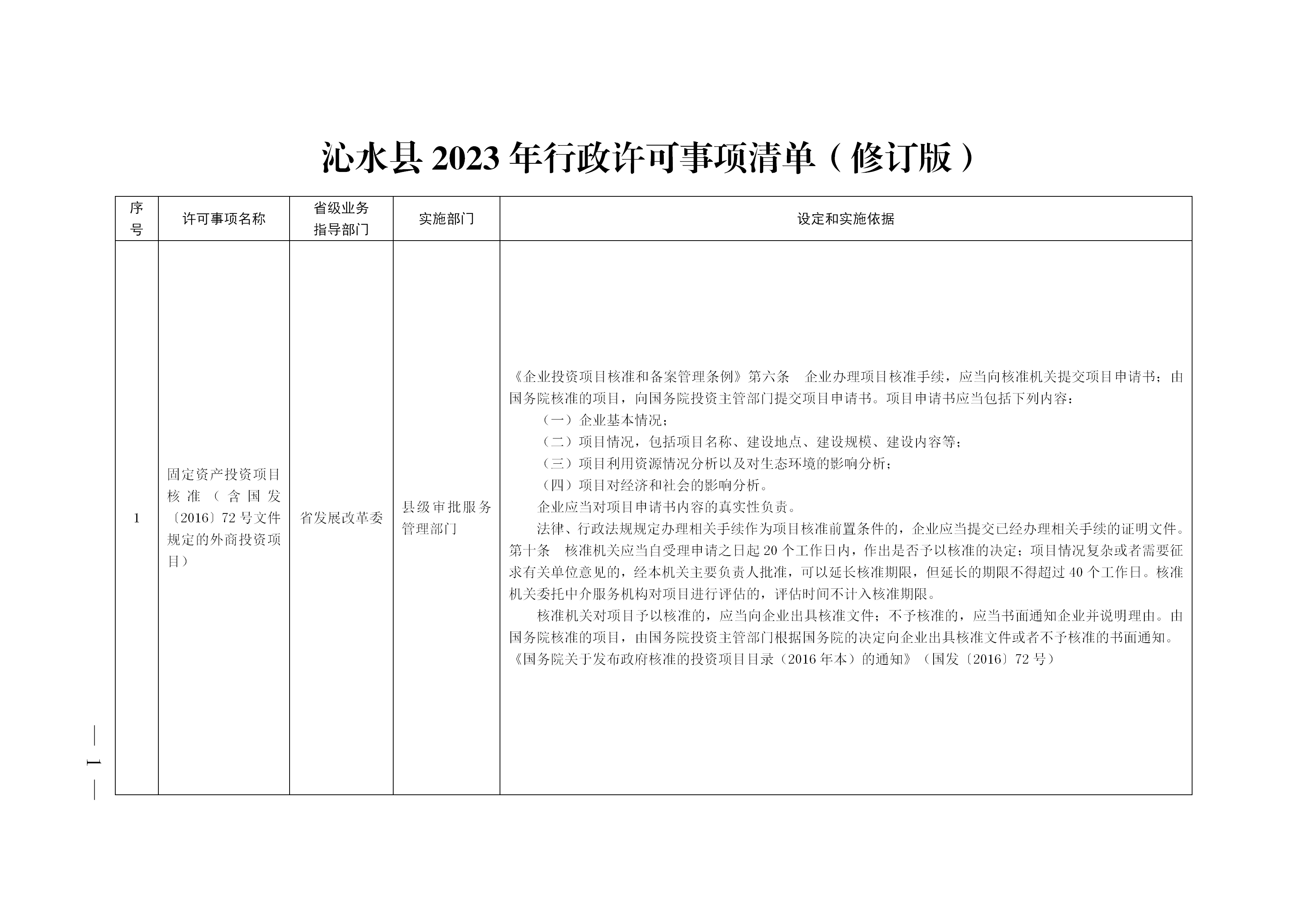 2023年12月,我县公布了《沁水县行政许可事项清单》(2023年版),根据《晋城市人民政府办公室关于公布晋城市行政许可事项清单(2023年版)的通知》(晋市政办〔2023〕50号)文件精神及晋城市优化营商环境政治监督专项检查发现问题整改工作要求,现对我县行政许可事项清单进行动态调整,具体内容如下:
