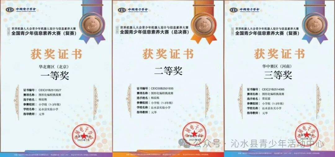 在2025年世界机器人大会青少年机器人设计与信息素养大赛全国比赛中,沁水县青少年活动中心科技班学员杨宸栋、常宸霖一路过关斩将,从35万人次参赛选手中脱颖而出,分别荣获华北赛区复赛一等奖、三等奖,荣获全国总决赛二等奖!