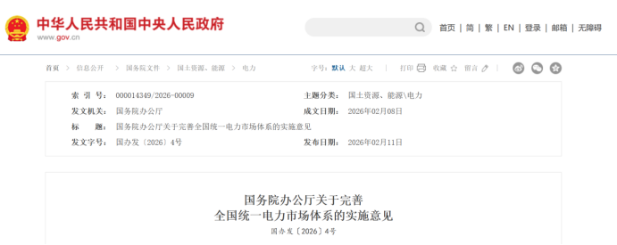 2月11日,国务院办公厅发布的《关于完善全国统一电力市场体系的实施意见》指出,到2030年,基本建成全国统一电力市场体系,各类型电源和除保障性用户外的电力用户全部直接参与电力市场,市场化交易电量占全社会用电量的70%左右。跨省跨区和省内实现联合交易,现货市场全面转入正式运行,市场基础规则和技术标准全面统一,市场化电价机制基本健全,公平统一的市场监管体系基本形成。以下为原文: